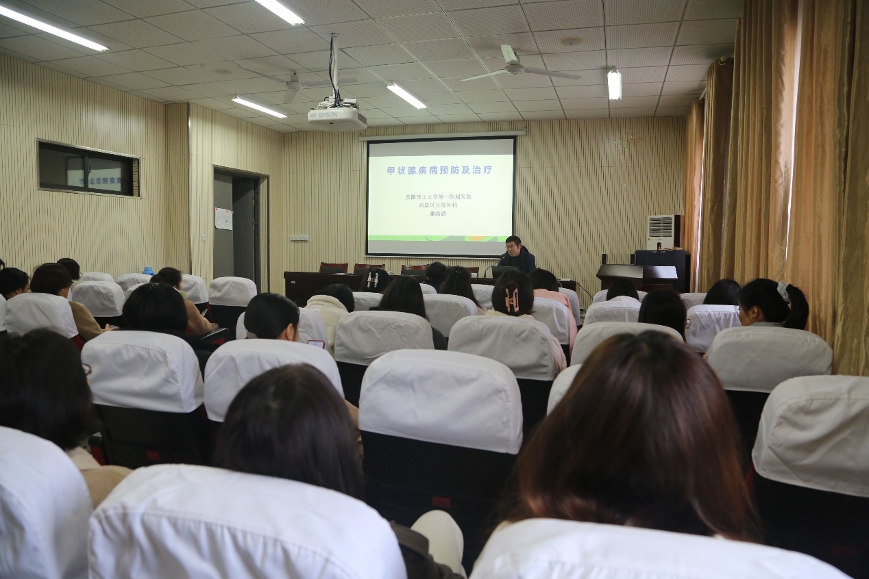 滕医师针对当前女性甲状腺和乳腺疾病多发现状,通过生动的语言和详细的病例分析讲解,对甲状腺、乳腺疾病的病理原理和诊疗方式以及疾病早期症状、临床表现和自我诊断做了重点讲解。他提醒广大女性要进一步加强对自身健康问题的重视,提醒女性师生日常要多预防、常体检、早发现,养成以预防为主,治疗为辅的健康观念,建议大家在平时的点滴生活中关爱自己,不断增强自我保健意识。