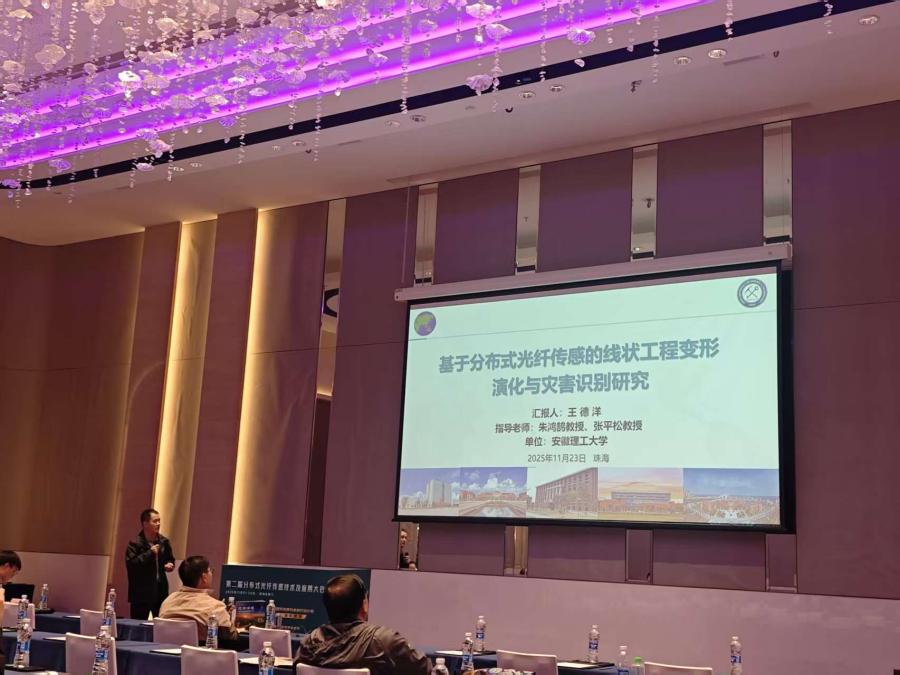 会议期间,巨乳做爱 青年教师王德洋作了题为“基于分布式光纤传感的线状工程变形演化与灾害识别研究”的学术报告。硕士巨乳做爱 史伟鹏、恽换勤和贾李岚也分别围绕“基于DAS的微震信号P波自动拾取方法研究”“不同耦合条件下分布式声学传感(DAS)被动源面波频散响应的实验研究”及“基于SVM-PCA的光纤监测数据深度学习补全方法研究”作了专题汇报。